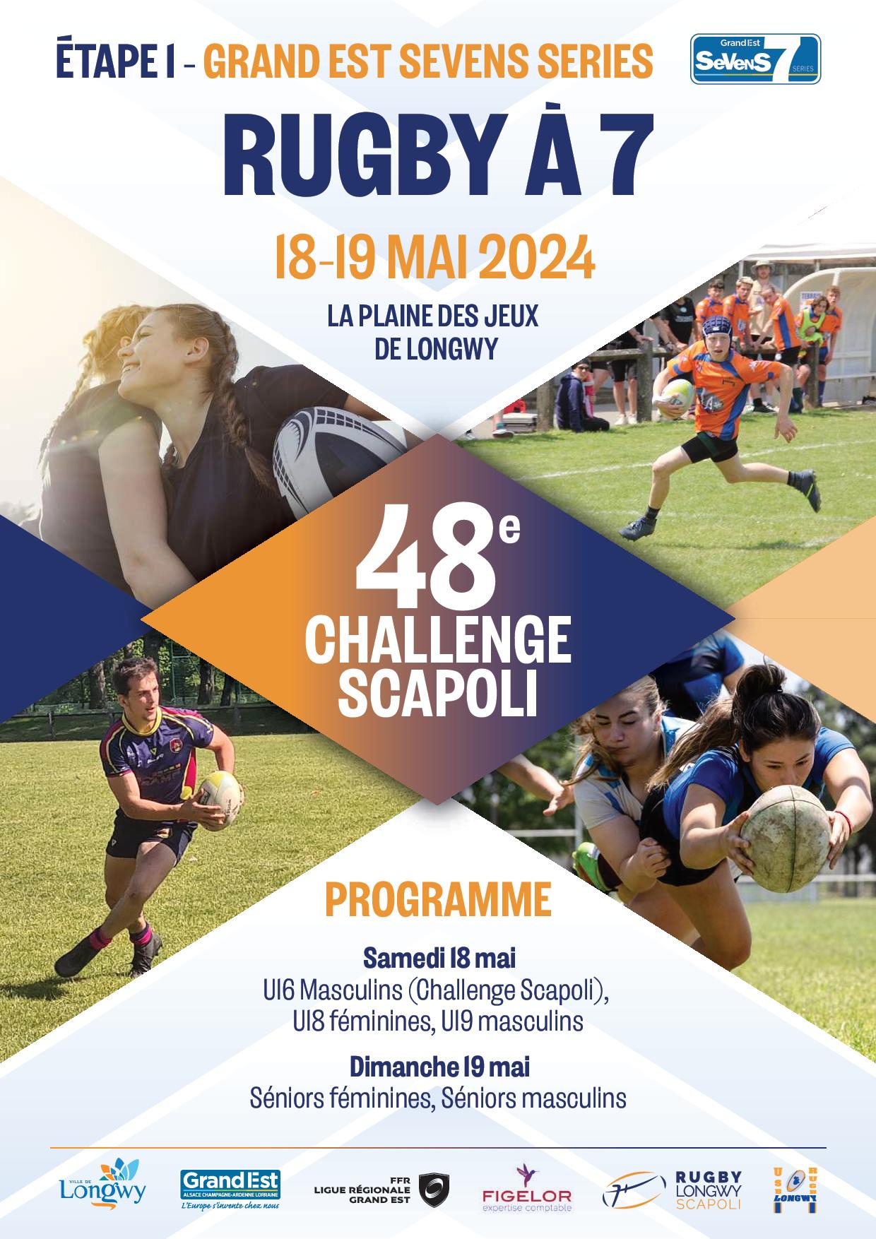 Les 18 et 19 mai 2024, le 48ème CHALLENGE SCAPOLI accueille l'étape 1 du GRAND EST SEVENS SERIES